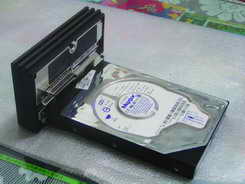 注意:主机接口的针脚和网卡接口的针脚一定要对准,而且一定要把硬盘的跳线设为Master(主盘),否则安装以后可能出现不认硬盘或不能格式化等问题。另外硬盘毕竟是一个很脆弱的东西,所以放入的时候还是小心轻放为好。最后用螺丝刀将网卡后面的两个固定螺丝拧紧就完成网卡、硬盘的安装了。
