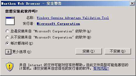 作为正版增值计划中的重要部分,微软要求用户在下载软件前先进行正版验证。进入到“特价商品”的页面(http://www.microsoft.com/genuine/offers/default.aspx?displaylang=zh-cn),单击其中某项免费软件介绍后的“继续”按钮,便会出现一个ActiveX对话框,提示用户安装正版验证工具(图1)。点击“安装”按钮即可开始安装。如果通过了验证工具的正版验证,那么便会进入到商品的详细信息页面,通过点击相应的链接即可下载该软件。