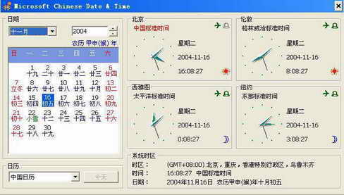 想知道元旦是星期几,查看一下系统时钟里的“时间和日期”就可以了;想知道2008年春节是几月几日或伦敦、纽约这会儿是几点可就不容易了,因为系统时钟里不会显示农历和其他时区。而安装了Microsoft Chinese Date & Time(以下称微软农历)后,你便可以得到这些想要的信息。