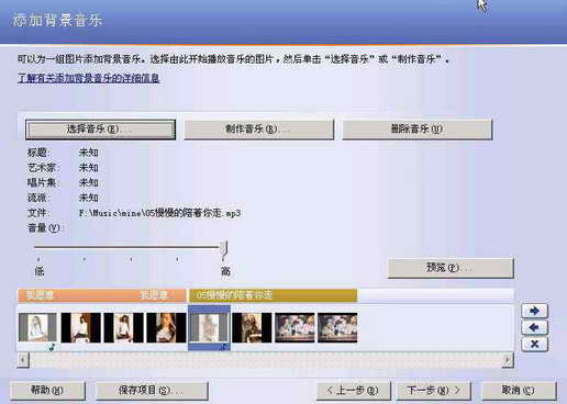 提示:我们可以定义相册中每首音乐起始图片,只要先选择图片然后添加背景音乐即可。