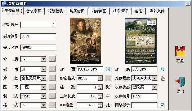 不过由于小编并不是真正的影碟发烧友,因此在使用过程中感觉要录入的信息比较多,有些繁琐,应该说,它更适合影碟发烧友使用。如果开发者能整理出一个庞大、相对完善的影碟信息网络数据库,让普通用户可以通过数据库查找并录入影碟的相关信息,无疑会方便许多,毕竟并不是每个用户都熟悉那么多的影碟信息。