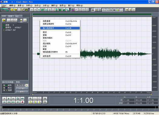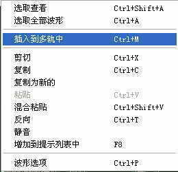 4.音量标准化处理完毕,在单轨界面的音频波形上单击右键,选择“插入到多轨中”(图6)。