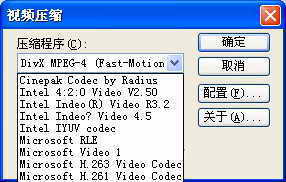 这时又弹出如图2所示的“视频压缩”对话框。选择一种压缩程序(如果选择“全帧非压缩”,那这个视频文件就太大了,在此压缩一下可大大减小文件)如DivX MPEG-4 (Flashast-Motion),单击“确定”按钮,出现导出影片的进度条,此时导入影片的操作就已经完成了。