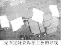 一切准备好后,就开始动手术了,先将导线放在板卡上整理好,由于显卡断的线不长,不用胶布固定(如图1),但主板断线比较长,所以先用胶布将导线固定一下(如图2),再进行焊接。焊的时候一定要小心,烙铁头不要留在焊点上太长时间,以免过热损坏PCB。经过十来分钟的努力后,终于完成了工作。接着做好焊点的绝缘工作,用胶布将焊点封好。