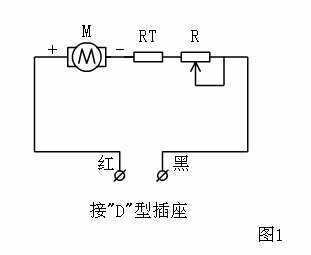 图1就是温度监测仪的工作原理示意图。它是由电流表头M、热敏电阻RT、可调电阻R串联后,通过“D”型插座与电脑机箱内开关电源连接。由于热敏电阻的阻值随温度的变化而变化,从而影响电路中的电流随之变化,电流表的指针将迅速显示出这种变化。利用这个原理,我们就可以将电流表变成电子温度表。