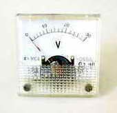笔者所用的元件,都是从旧货市场上买来的。电流表头有很多样式和规格,可根据机箱面板和个人喜好来选择,笔者用的是4cm×4cm的小型表头(图3)。表头中间的字母“V”表示这个表头是用来显示电压的,刻度值0~30是它的测量范围。