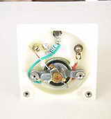 我们需要将表头改造一下,分别将表头正面外壳下侧及刻度盘下侧的两颗螺丝钉拆下,小心取下刻度盘,这时可以看见里面有一只限流电阻(图4)。用电烙铁焊下限流电阻,并将原来连接限流电阻的导线焊在左侧的接点上。将刻度盘上的字母“V”用白色胶贴纸盖上并在上面写上“℃”,将刻度盘及外壳装好,电流表就改装成温度表了。