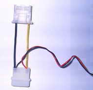 经实验,为了确保温度测量的精确度,本电路需要7V左右的电压。只须将“D”型插座的线调整一下即可得到这种电压。调整方法很简单,用修理钟表用的一字形小螺丝刀,分别压住“D”型插座里插针两侧的卡片,将“D”型插座里的红线和两根黑线插针抽出,再将连接风扇黑线的插针插入“D”型插座靠边的插孔,红线和另一条黑线去掉不用,调整便完成了。这样调整后的“D”型插座中,只有两侧的插孔中分别有黄色和黑色电线(注意不要调整黄色线)。图6为调整后的外观图。