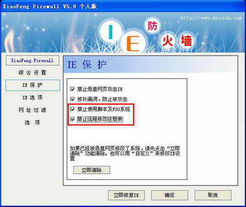 小风IE防火墙为我们提供了一系列的防护装备,以保证顺利地冲浪。