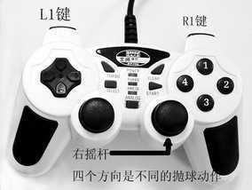 不过,由于本次EA SPORTS加入的AIR Free Style操作模式需要多个键位以及方向的调整配合才能完成,所以很多动作用键盘是做不出来的,最多只可以做出最基本的扣篮动作,得高分的几率非常小。所以,请准备必要道具──仿PS2的手柄(就是带摇杆的)。本文均以北通C036手柄做示范(如下图)。下面就是具体的操作了!