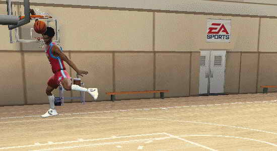 通过随意组合按键,起跳和扣篮的动作是可以随意搭配的,不同的按键组合会做出不同的扣篮动作。手柄顶端的L1和R1键还可以增加动作难度,可以和任何阶段的任何动作按键组合起来做出新的动作。有两种起跳动作还可以进行大转身,在按下起跳动作键的同时,把左摇杆转一圈就可以实现360度转身起跳。