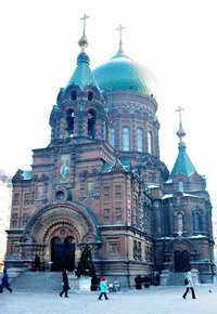 哈尔滨是我国著名的冰城。与中华民族两千多年灿烂的文化发展史相比,哈尔滨是一个仅仅有百年历史的城市,但却是一座具有特色的城市,多了几许异国浪漫的都市情怀,素有东方“巴黎”的称谓。在哈尔滨的街区道路上徘徊,你会不断地在松树后,在楼群里看到风格不同的教堂、庙宇。其中最出名的就是圣·索菲亚东正大教堂。哈尔滨的圣·索菲亚东正大教堂是世界两大圣·索菲亚教堂之一。始建于1907年3月,是沙俄东西伯利亚第四步兵师修建的随军教堂。该教堂深受拜占庭式建筑风格影响,富丽堂皇、典雅超俗、宏伟壮观。