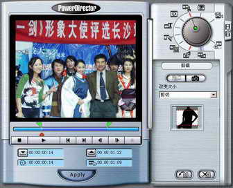 打开《威力导演》后,我们看到它的界面类似《会声会影8.0》,但除了顶部设有文字菜单外,还在窗口右上角设置了一个别具一格的模式选择转盘(图1)。很多朋友都说它像数码相机上的模式转盘一样,不但赏心悦目且使用起来十分方便。你只要点击一个模式图标,它就会在“预览”、“剪切”、“特效”、“转场”、“制作”等模式中自动切换到你选定的模式下。我很快就喜欢上了这种好玩有趣的菜单模式。