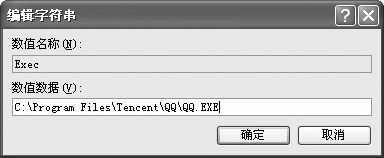 在默认状态下,Exec的数据值是C:\Program Files\Tencent\QQ\QQ.EXE。于是我双击Exec弹出如图所示的对话框。