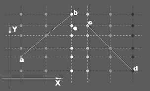 如图2所示,这里有两条线段ab和cd,当这两条线段一旦被绘制在屏幕上之后,我们就能够想到e点已经被定位了。那么如果有一个要求,以e点为圆心绘制一个圆形,我们该如何做呢?