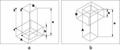 如图4-a所示,有两个方块造型,方块A和方块B。方块A的高度为a,那么方块B的高度为b,现在如何做才能够将方块A向上移动到一定的高度,使得方块A的上面和方块B上面处于同一个面上呢?移动的结果如图4-b所示。