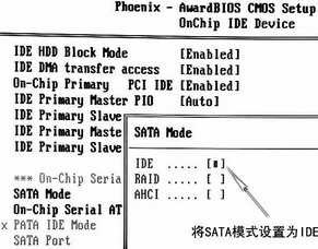 在BIOS设置程序中将ICH5R南桥的SATA控制器设置为IDE模式后,就可以像ICH5一样,无须任何特殊操作就可以安装Windows操作系统了。