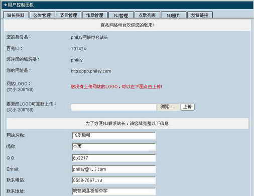 个人资料填写完毕,接下来就可以点击相应的按钮来完善你的电台了。如节目管理、作品管理、NJ管理等。这样,你的个人电台算是成功了一半了。