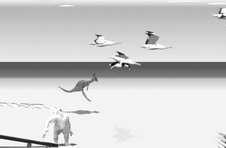 澳大利亚篇要比拼的是飞行技能,企鹅自然是飞不起来的,但却能搭乘迁徙候鸟的便机,首先通过雪人将空中后,紧张的飞行之旅便开始了。由于负重增加要保持候鸟的正常飞行就需要不断的扇动翅膀,界面下方有一条候鸟的力槽,每点击鼠标扇动一下翅膀便要耗费些许力气,而滑行则可少量恢复,企鹅坠地游戏结束。掌握好滑行与扇动翅膀的节奏很重要。