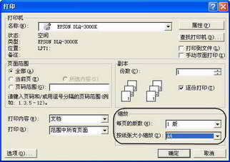 Step1. 依次点击“文件→打印”打开打印对话框窗口。在“缩放”下,将“每页的版数”设为1版;接着在“按纸张大小缩放”下拉框选择要使用的纸型,比如,如果要将B4纸型的文档打印在A4纸型的纸张上,可选择“A4”(图2),默认为“无缩放”表示按照默认的纸张大小进行打印。最后,单击“确定”按钮。这样,在打印当前Word文档的时候,原本B4纸型的文档将通过自动缩小字号和图形将其打印在A4幅面的纸张上。