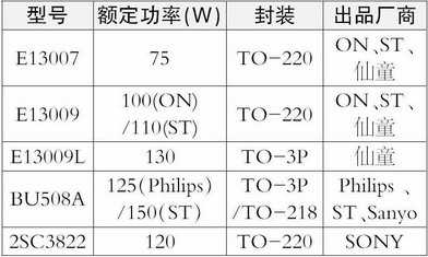 经验与技巧:一般功率开关电路(PWM)中会使用两只相同型号功率开关管协同工作,两管额定功率之和就是电源额定功率的上限。因此,根据使用功率开关管的型号可以大概判断电源的额定功率的大小。使用E13007的电源的额定功率不会超过150W;同理,使用E13009的电源的额定功率在300W以下。另外,TO-220和TO-3P封装的功率开关管引脚定义相似,可以直接替换。