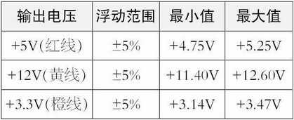 经验与技巧:连接主板电源接口的绿线(提供PS-ON电源启动信号)和黑线(地线),可供给Power Good信号,启动电源。下表是Intel在ATX标准中规定的电压浮动范围,用于判断改造后的电源是否工作正常。