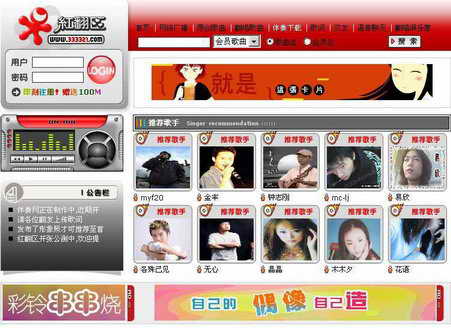 怎么样?忍不住要放声歌唱了吗?到提供上传翻唱歌曲空间,就可以上传作品,参加排行榜活动。《红番区》是成龙主演的一部电影,而“红翻区”则是一个音乐翻唱原创爱好者的网络家园。注册成为网站会员,就可以得到100MB的歌曲上传空间,可以拥有自己的主页和专区。敢唱吗?敢唱的话,你也会红!