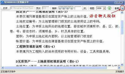 首先,由邀请方(也就是文档提供方)发送一个邀请。单击“动作”菜单中的“远程演示文档”选项。当被邀请方接受该邀请后,在邀请方的窗口中会弹出一个文档演示面板。这样两人就可以同时查看到打开的文档了。例如Word文档、记事本文档、Excel表格文档或图片文档等等(图2)。而且还可以进行语音交流,这要比来回奔跑方便多了。
