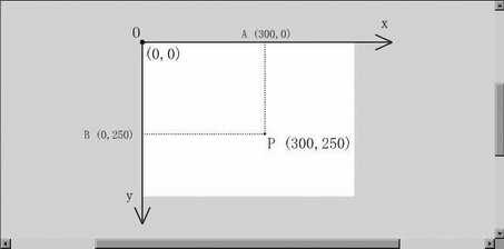 以图1为例,在大小为550×400像素的窗口中,点P的坐标为(300,250),这样,我们就可以根据自己的需要为影片剪辑设置位置,可以采用setProperty(“剪辑名”,_x,100);或点语法:“剪辑名”._x=100 “剪辑名”._y=200来修改坐标。
