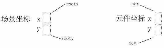首先在舞台上绘制静态文本:“场景坐标 x y”、“剪辑坐标 x y”并分别对应制作两个动态文本框用于显示鼠标的坐标,并分别命名:rootx、rooty、mcx、mcy。(图3)。