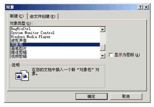 为了让你的陷阱迷死人,还要为图标加上一个名字。一定要将文件保存!你想一想在文件中只有一个图标,那是吸引不了人乖乖上当的。所以我们要把它美容一下,写上一些吸引人的文字。另外可以利用“格式→背景”功能,插入文件的背景,然后在对象上右击,选择“包对象→编辑包”。最后只要将文件保存就可以了。
