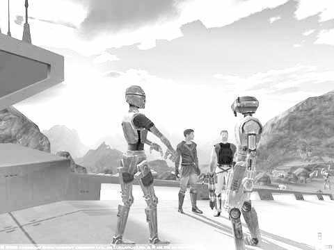 一年前,作为电脑平台上的全三维RPG,《旧共和国武士》的画面可以说是前无古人的,但那是一年前,虽然很多自认为骨灰级的玩家不愿意承认,但在DOOMⅢ和《半条命2》都已经发售、《虚幻三》虎视耽耽的今天,引擎毫无变化的kotor2吸引眼球的能力已经衰减了70%以上。以星战这样伟大的题材做背景,以RPG这样引人入胜的类型作为系统的这样一个万众瞩目的游戏,居然只有DX8时代的画面,这不是显得很不敬业么?但这也是为了制作Xbox版而不得已作出的妥协,PC版的画面还是会有比较明显的进步。