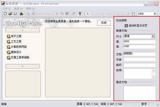 在制作教案时经常需要画一些流程图,工程师在做工程时,也经常要绘制一些流程图,还有很多朋友都会经常遇到绘制流程图的情况。以往,大家都会在系统中安装绘图专业级工具“Visio”。它的功能是无可厚非的,但是它的使用难度如同身材一样“大”。其实,你只要在系统中安装《金度美案》这款软件就可以解决问题。