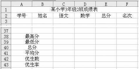 启动Excel,输入需要的文字信息,由于学生人数为35,所以3—37行留出输入学生成绩。如图3所示。