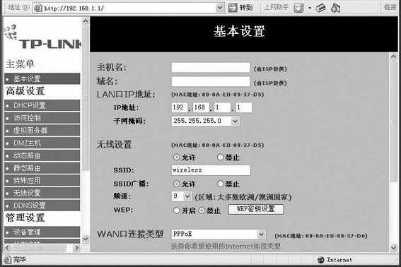 通过无线路由器组建的局域网中,除了进行常见的基本设置、DHCP设置,还需要进行WAN连接类型以及访问控制等内容的设置。