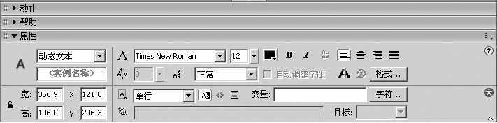 新建一个图层,命名为score,在工具箱中点击“文本工具”按钮,然后在“属性”面板中更改其为“动态文本”,在“现在分数:”的后面拖出一个输入框,在“属性”面板中将“变量”更改为score。如图4所示。
