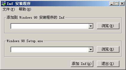 在Windows 98安装光盘的\Tools\Reskit\Infinst文件夹下找到并运行Infinst.exe。在出现的程序主界面中点击“添加到Windows98安装程序的Inf”选项组中的“浏览”按钮,选择已经复制到硬盘中的各硬件的驱动程序所在文件夹中的INF文件,再点击“Windows 98 Setup.exe”选项组中的“浏览”按钮,选择Windows 98的安装程序文件(例如,D:\Win98\setup.exe)。如图2所示。之后点击“添加Inf”按钮,即可将驱动程序集成到Windows 98的安装文件中。重复该操作将所有要自动安装硬件的驱动程序都集成到系统安装文件中。