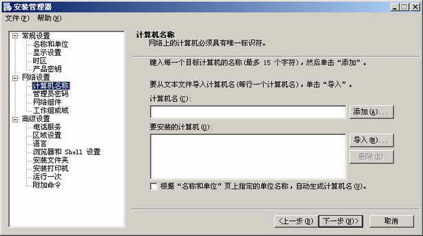 由于“安装管理器”是基于向导模式操作的,因此用来创建应答文件比较简单: