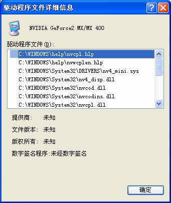点击“驱动程序”选项卡,在此我们可以对当前驱动程序的提供商、驱动程序日期、驱动程序的版本、数字签名程序等信息作进一步的了解。点击“查看驱动程序详细信息”按钮,打开“驱动程序文件详细信息”对话框,在“驱动程序文件”信息框中我们可以对驱动程序的配置文件进行了解,如图3所示。并且在该信息框的下面还为各个配置文件提供了更为详细的文件信息,如文件提供商、文件版本、版权所有、数字签名程序等。查看后点击“确定”按钮返回上一界面。