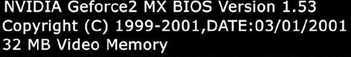 注意:显卡自检画面显示的时间很短,所以必须注意观察才能看清显示的内容。其中“nVIDIA”后面显示的是当前显卡的具体型号,比如是GeForce 4 Ti 4200还是GeForce 4 MX440。最下面的那一行是该显卡的显存容量。