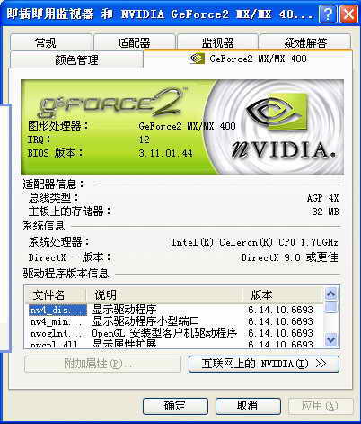 目前,显卡所采用的显示芯片主要由nVIDIA、ATI及Intel等三家厂商生产。虽然具体的芯片型号非常多,但这三家所提供的显卡驱动都是“通用型”的,也就是说只要是同一公司所生产的芯片,不管型号是什么,驱动都是通用的。