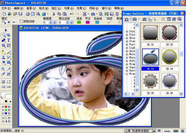给相片添加一个相框,这样会使相片锦上添花、增色不少,还会产生意想不到的效果。用户可以使用PhotoImpact对相片新增一个相框,因为在这个软件中有许多相框模板供大家使用,你轻轻松松就可以给相片添加一个相框。