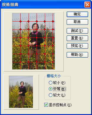 最后就可以使用扭曲特效了,在右边的“特效画廊”栏中选中“扭曲”,然后选取一种扭曲的样式并将它拖曳到相片的选取区域中,最后取消选定状态即可,如图20所示。