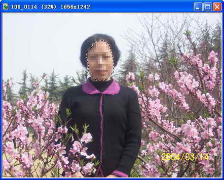 将需要进行脸部“马赛克”处理的相片打开,在左侧工具箱中依次选择“标准选取工具→套索工具”,使用此工具将相片中人物面部选取出来,最后单击顶部工具栏中的“完成”按钮产生套索选取区。