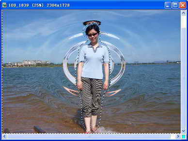 然后单击“确定”按钮,在弹出的菜单中选择“将当前帧效果应用到图像” 菜单命令,这就完成了水晶球里的照片新视界,果然出乎意料吧。