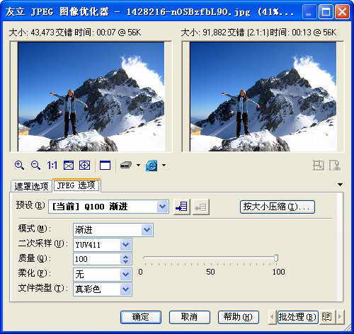 当对上述效果设置比较理想时,就可以单击“确定”按钮将修改后的效果应用到当前相片中,然后将得到的清晰相片另存为其他名称。如果想看一下两幅相片的对比效果,可以将修改前后的两幅相片同时在Photolmpact中打开,进行相应的比较,从中我们可以发现主体变得清晰了。如果用户认为还有必要再进行一下清晰处理,则可重复上述的操作。