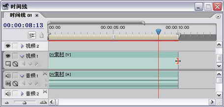 简单了解了时间线的一些特性后,我们先将项目窗口中的DV素材拖到时间线的视频1轨道上,素材的开头位置与视频1轨道的头部重合。如图6所示。