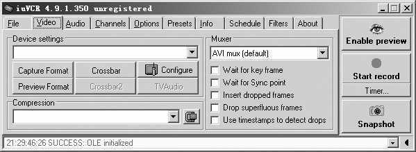 iuVCR是一款经典的PC电视录制软件,特别是在电视接收方面,简直就是一部全频道、全制式的电视机(不用手动切换),还能方便地使用inVCR采集你喜爱的视频信号并实时压缩成为AVI或者WMV等格式的视频文件,可以持续捕捉任何视频格式,还有自动运行等很多新特性。