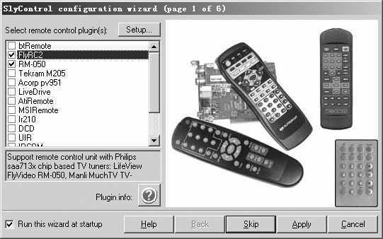 接下来一路点击“Skip”按钮,到第4步时,程序会要求你选择要遥控的程序,如果你打算使用RM-050脚本,这里可以点击“Skip”按钮跳过,直到最后点击“Apply”按钮即可完成设置。